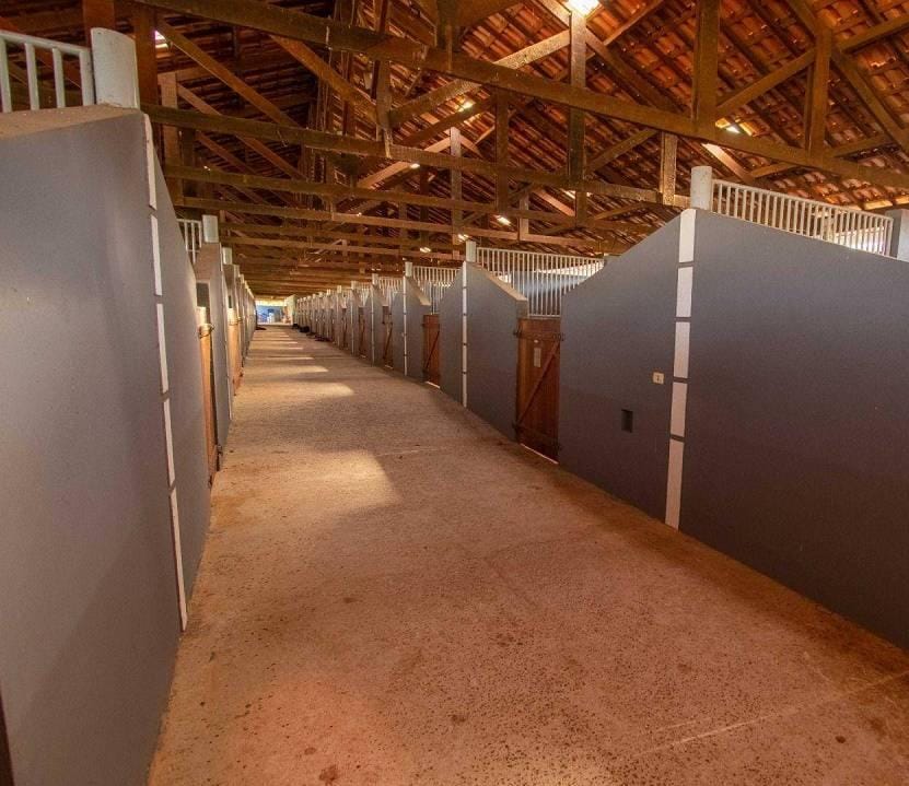 • Pavilhão principal são 28 baias, sendo 24 delas medindo 4,5 x 4,5m2 e outras 4 usadas para maternidade com tamanho de 5 x 5 m2