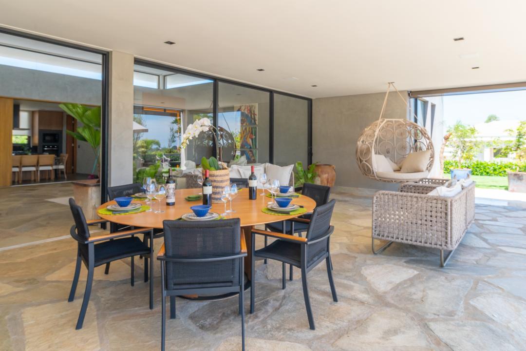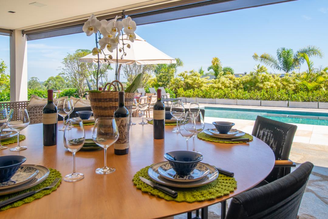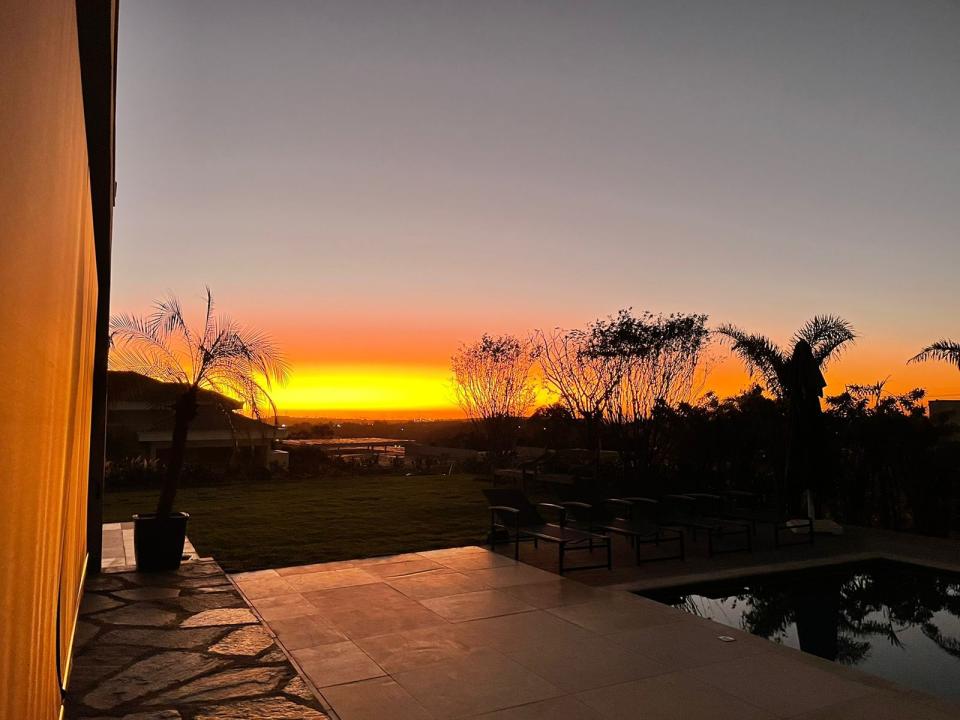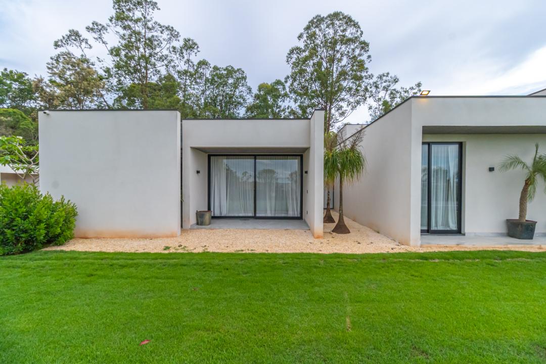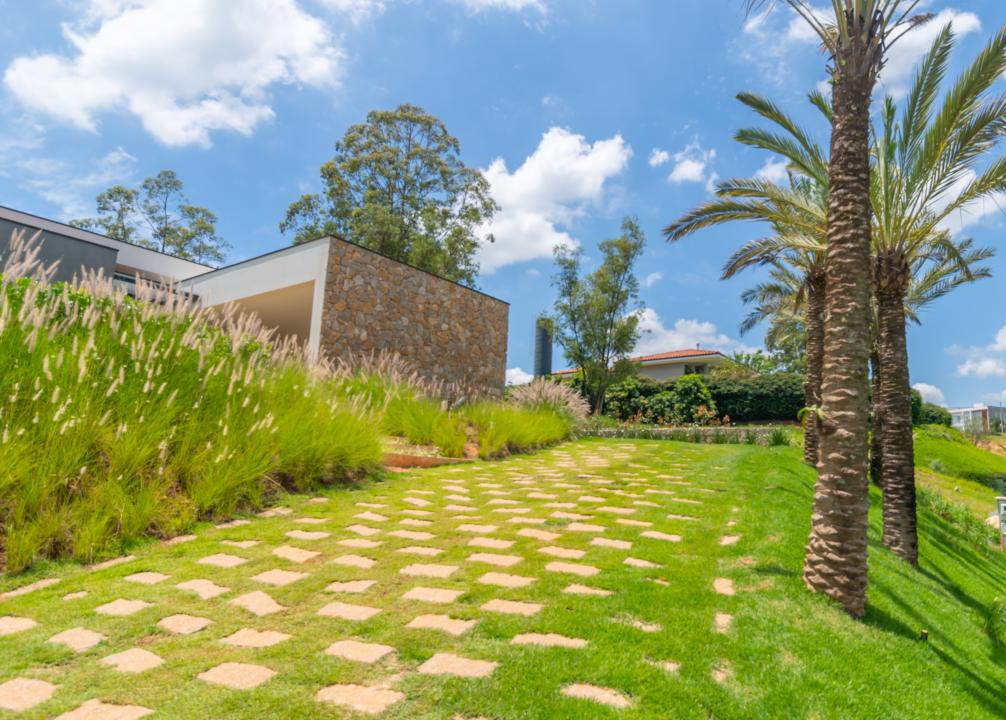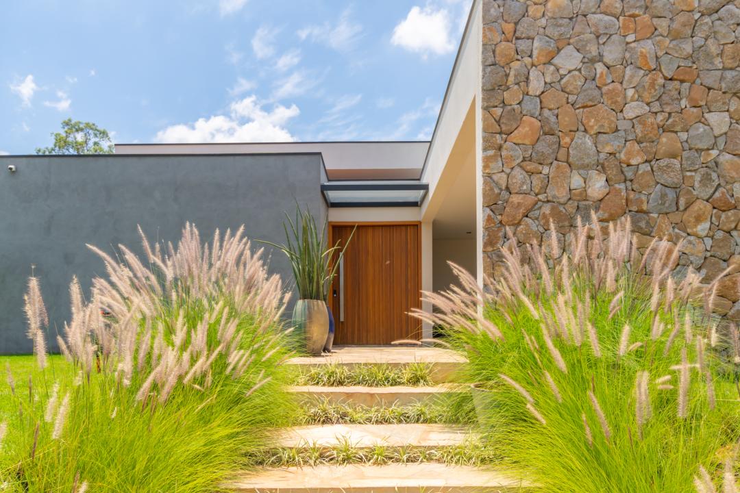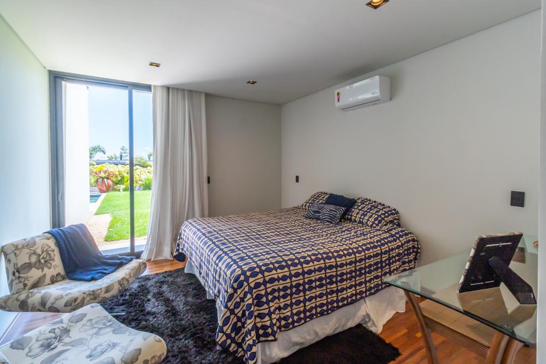 A casa oferece ampla área de convivência integrada dispondo de sala de estar, lavabo, sala de jantar, home theater, cozinha com ilha e espaço gourmet completo.