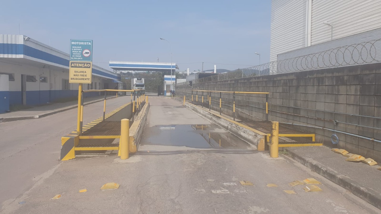 Estacionamento interno e externo para carretas e caminhões, balança rodoviária, portaria com guarita e apoio a motorista, com possibilidade de ser ampliada,