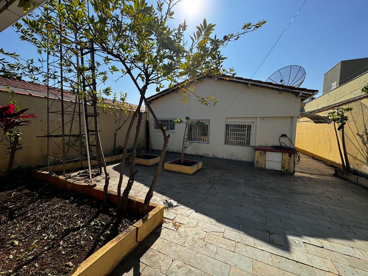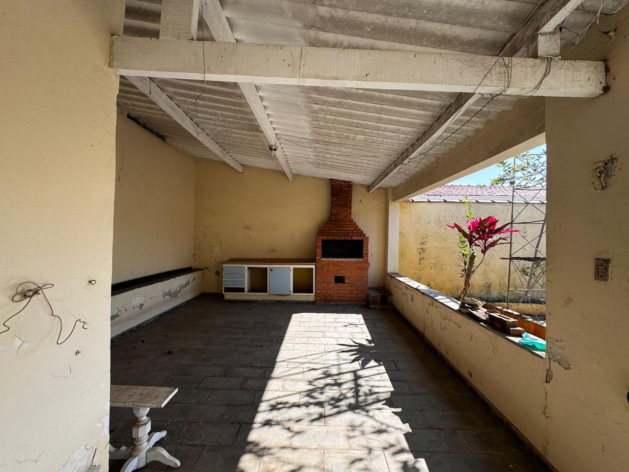 Quintal com churrasqueira, edícula com dormitório e banheiro.