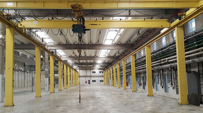 • 2 Pontes Rolantes com capacidade p/ 3 Ton e 5 Ton.